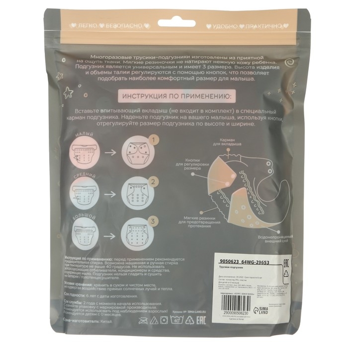 • Размер подгузника универсальный, подходит для детей от 3 до 15 кг, от рождения до 3 лет;
