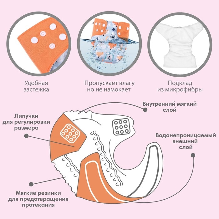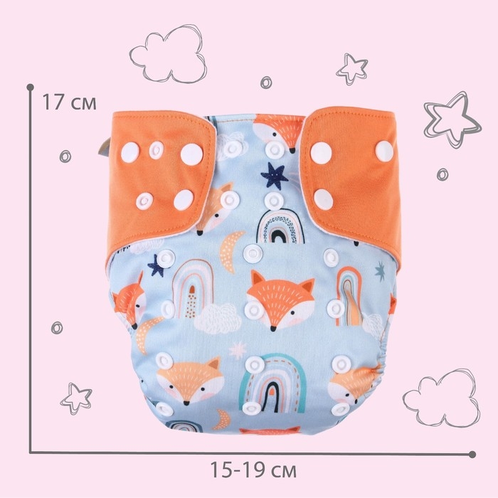 Многоразовый подгузник «Лисички», 3-15 кг, цвет голубой, оранжевый, Крошка Я