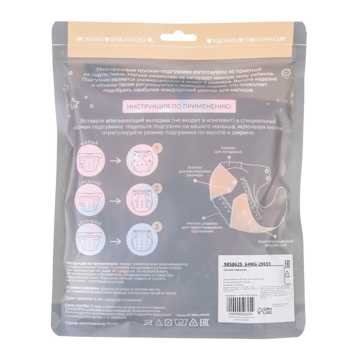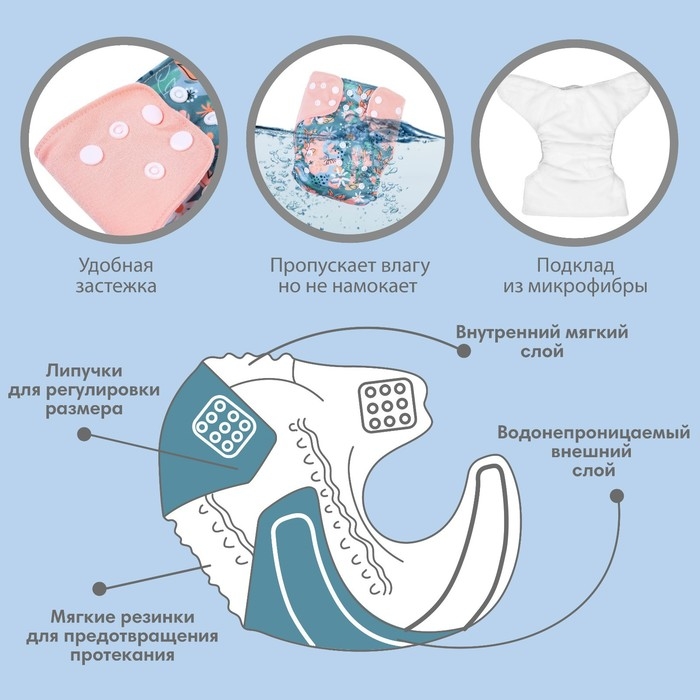 • Подгузник имеет удобный кармашек для вкладыша;