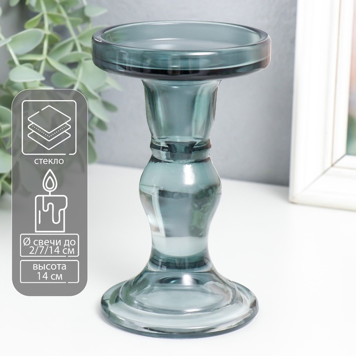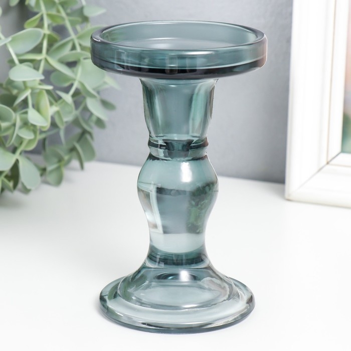 Подсвечник стекло "Подиум" d-2 и 7 см дымка 8,5х8,5х14 см