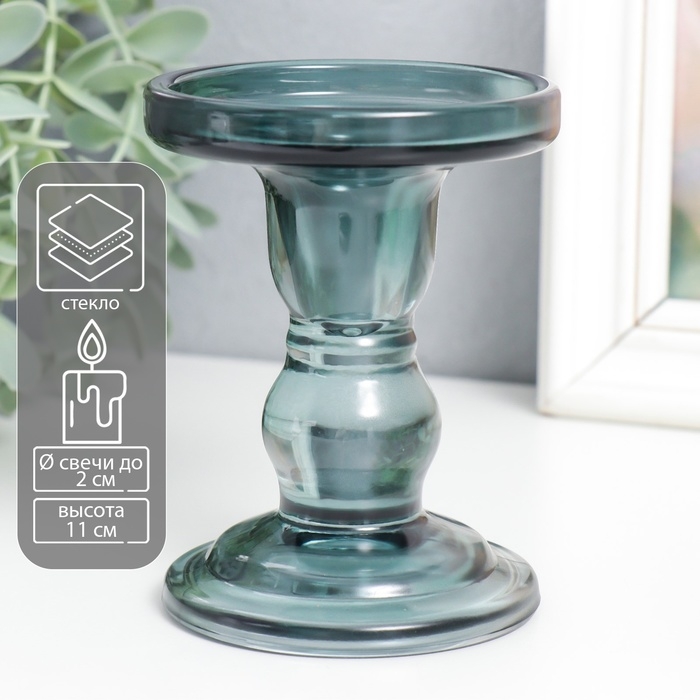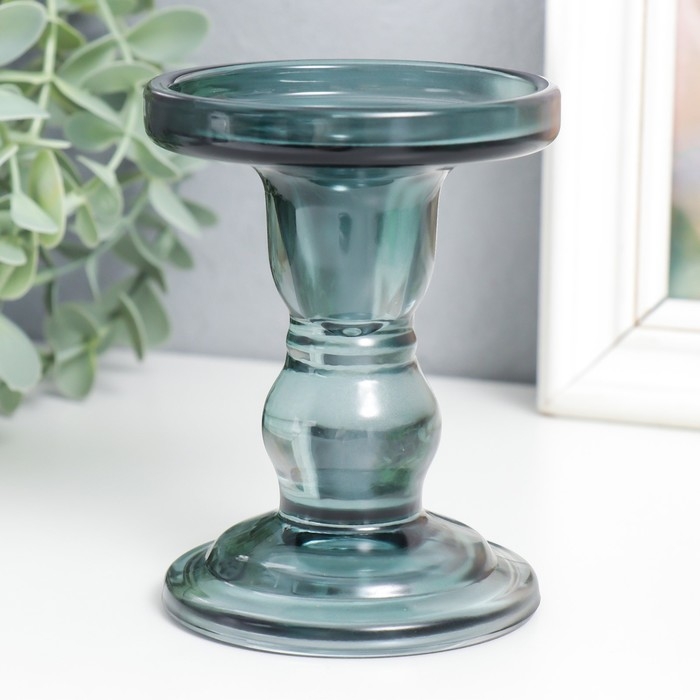 Подсвечник стекло "Подиум" d-2 и 7 см дымка 8,5х8,5х11 см