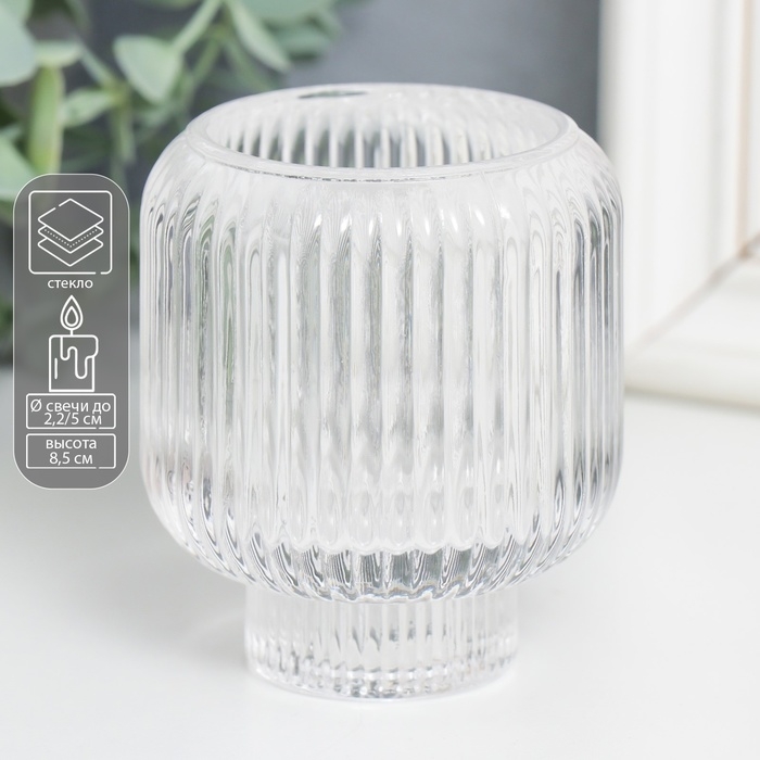 Подсвечник стекло "Галла" двухсторонний d- 5 и 2,2 см прозрачный 6,5х6,5х8,5 см