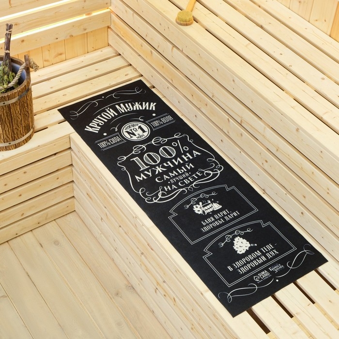 Лежак для бани с принтом "Крутой мужик, самый лучший на свете" 150х50 см