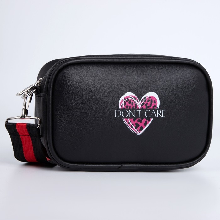 Сумка детская для девочки Don't care, искусственная кожа, на ремешке, черная, 18х11х6 см