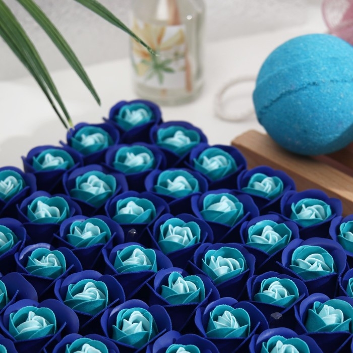 Розы мыльные бело-синие, набор 81 шт