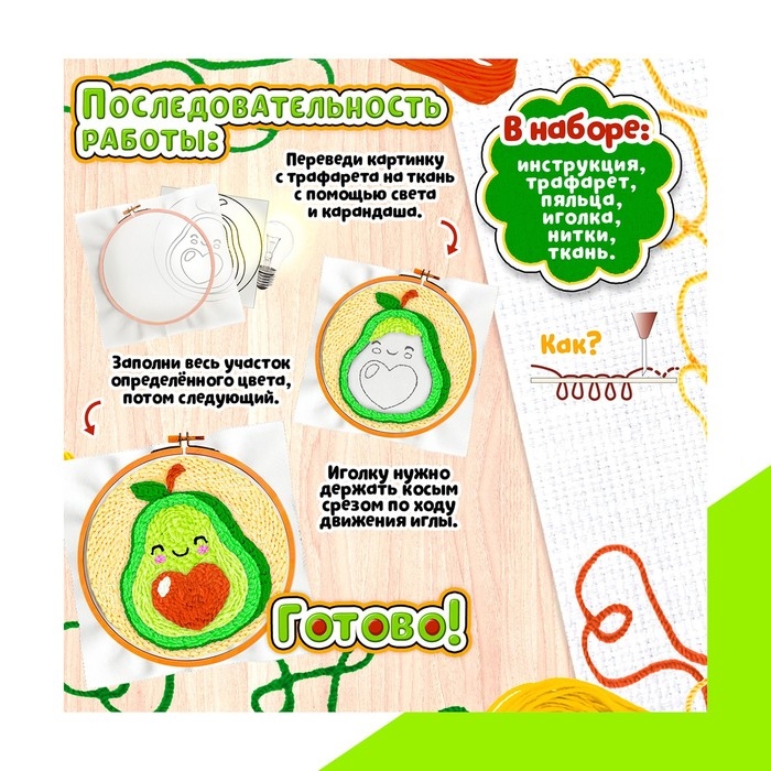 Погрузитесь в мир творчества с набором для ковровой вышивки «Авокадо». Этот комплект станет отличным выбором для любителей рукоделия и креативных занятий.
