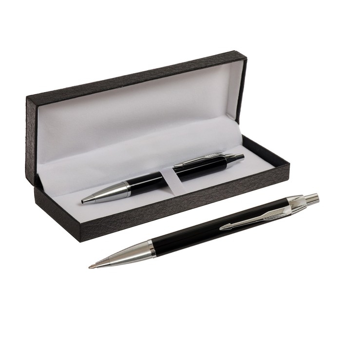 Ручка подарочная шариковая, в кожзам футляре, автоматическая, ПБ IM, корпус чёрный/серебро