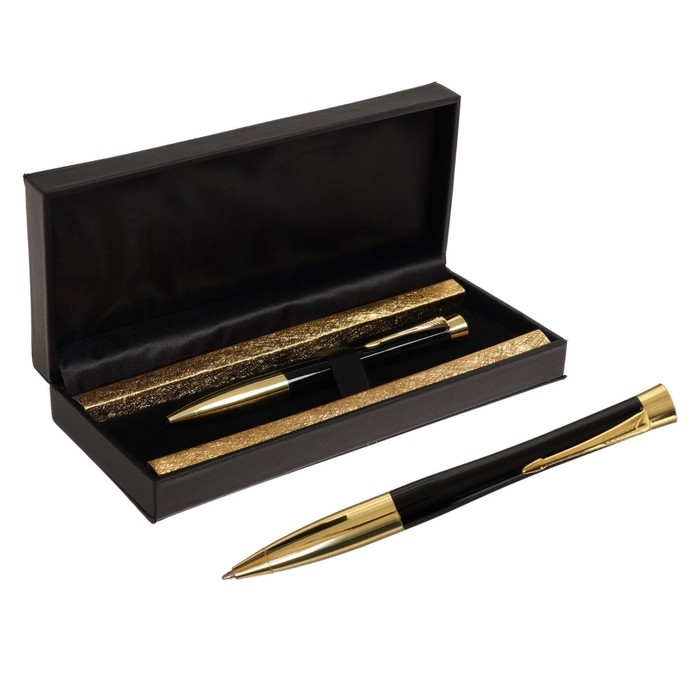 Ручка подарочная шариковая, в кожзам футляре, поворотная, ПБ U, корпус чёрный/золото