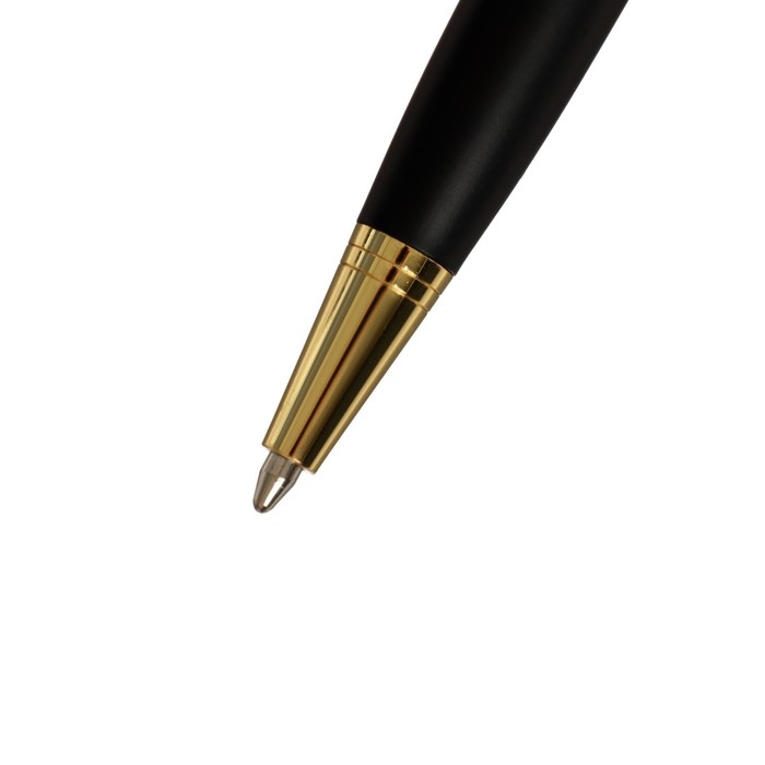 Ручка шариковая, подарочная, в пластиковом футляре, поворотная, "Бизнес", чёрная с серебристыми вставками
