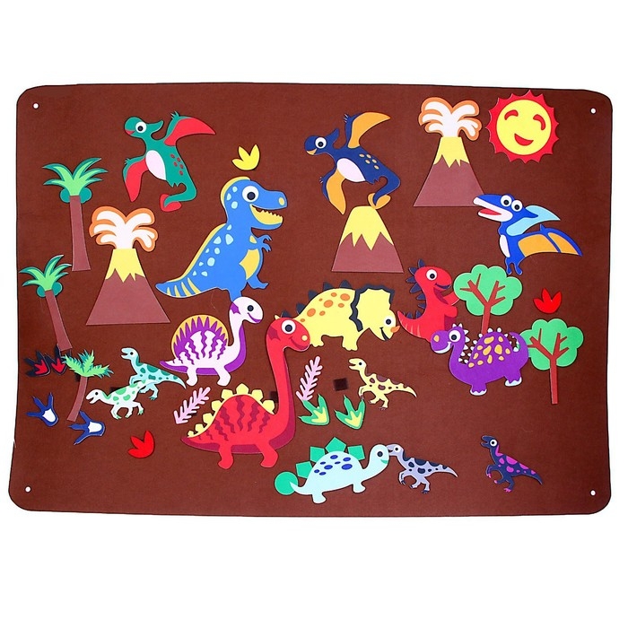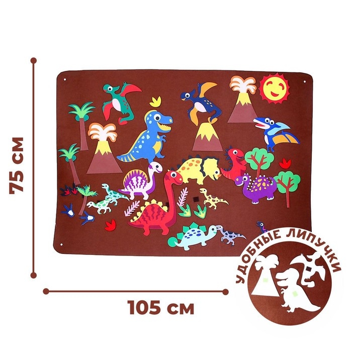 Бизиборд на стену из фетра «Динозавры и драконы» 32 детали на липучке, размер поля — 105 × 75 см