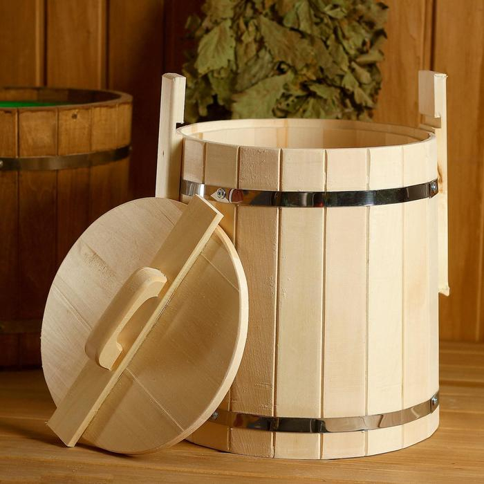 Кадка-бочка для засолки из липы, 15 л, нержавеющий обруч, с крышкой, "Добропаровъ"