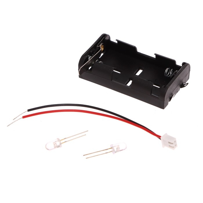 - В электронном конструкторе необходимо использовать батарейки 1,5 В. Такое напряжение безопасно для человека. Поэтому ребёнок сможет самостоятельно играть с набором, а вы — не переживать о его безопасности.