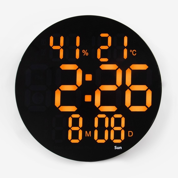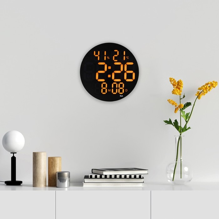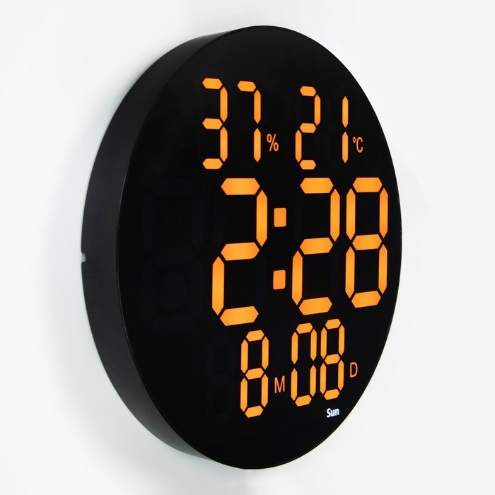 Часы настенные электронные, будильник, календарь, термометр, гигрометр, d-25 см, красные цифры 91977