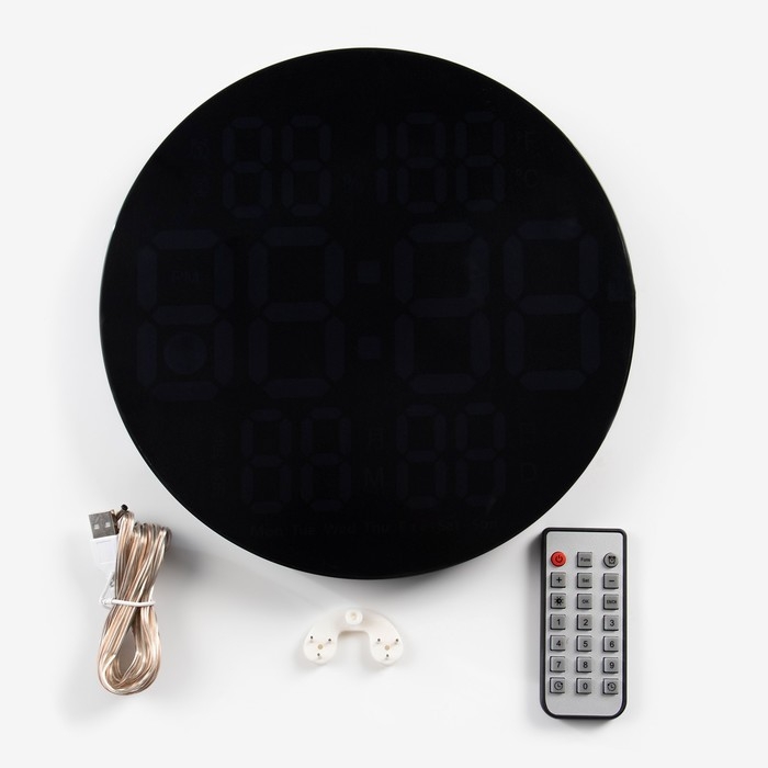 Часы электронные настенные, календарь и термометр, 36.2 х 15.5 см, белые цифры 10 х 4.5 см 1076627