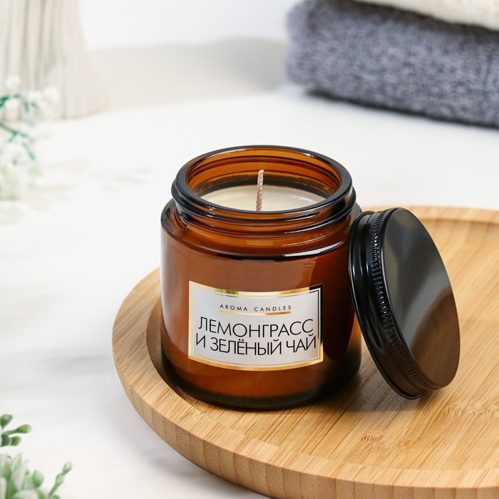 Свеча в банке ароматическая "Лемонграсс и зеленый чай", 6,2х6,2х6,5 см, 9 часов