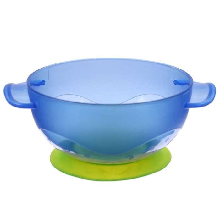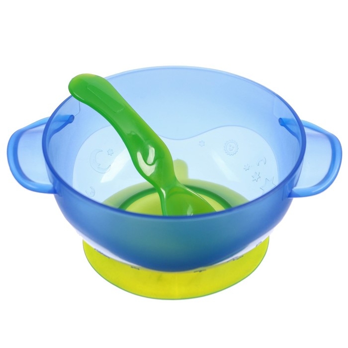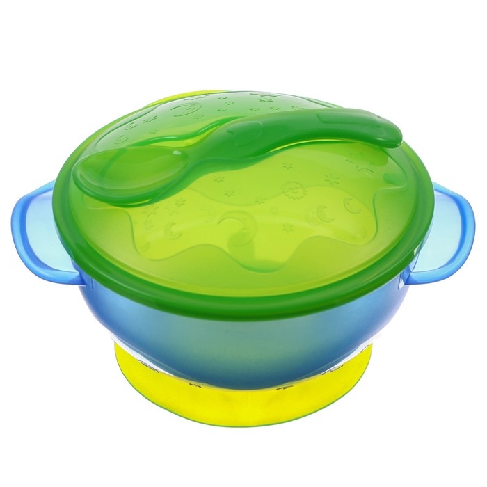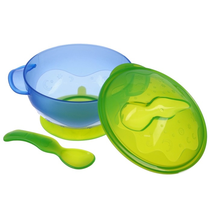 Набор для кормления: миска на присоске с крышкой, ложка, цвет голубой