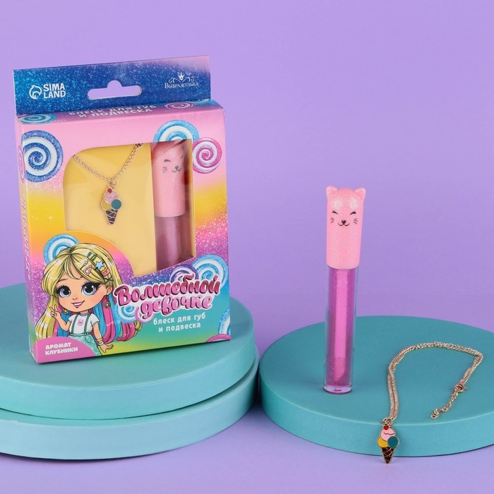 Блеск для губ с подвеской «Волшебной девочке», 8 гр, аромат клубники