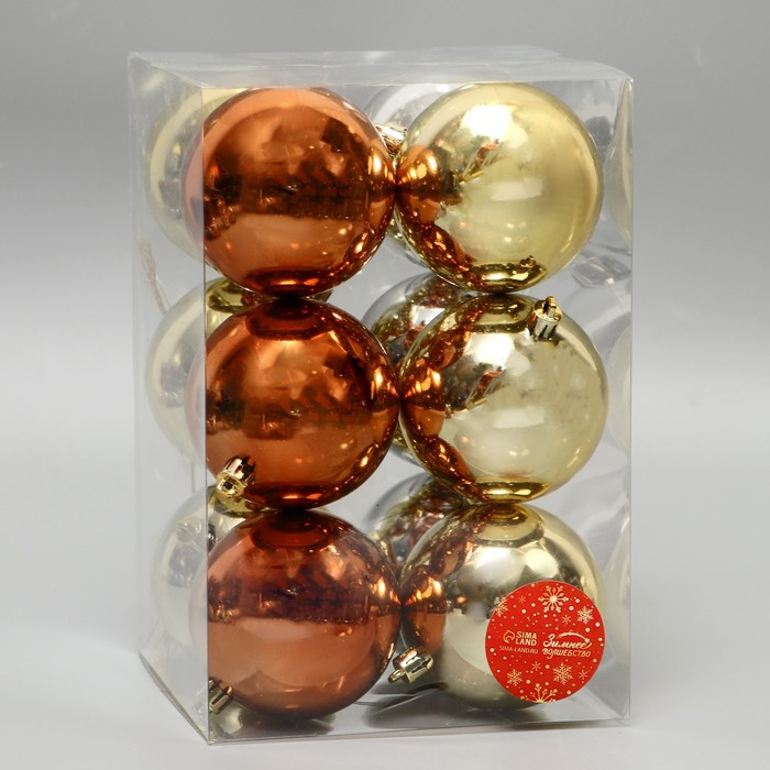 Набор шаров пластик d-7,5 см, 12 шт "Глянец" кофейный микс