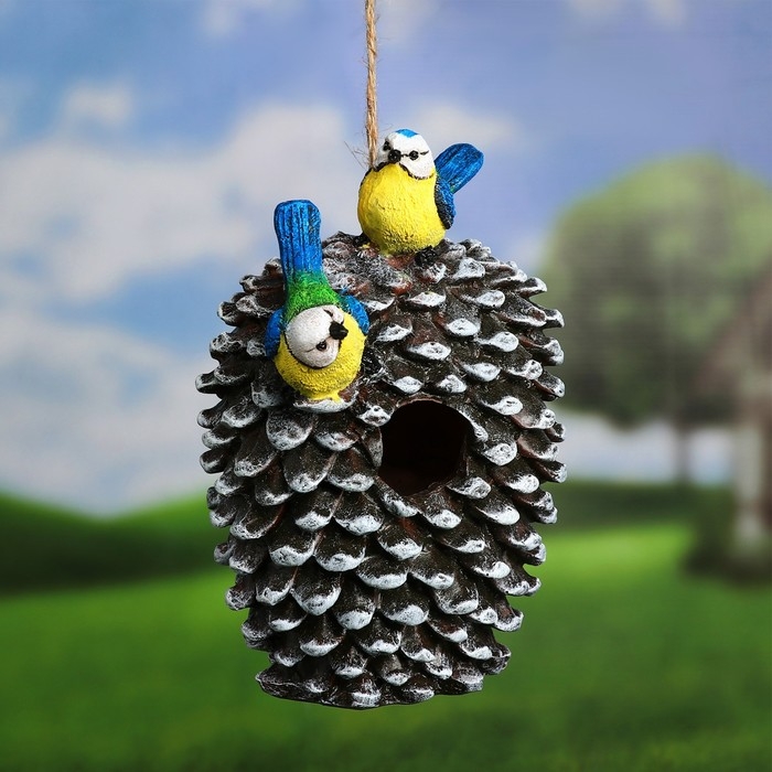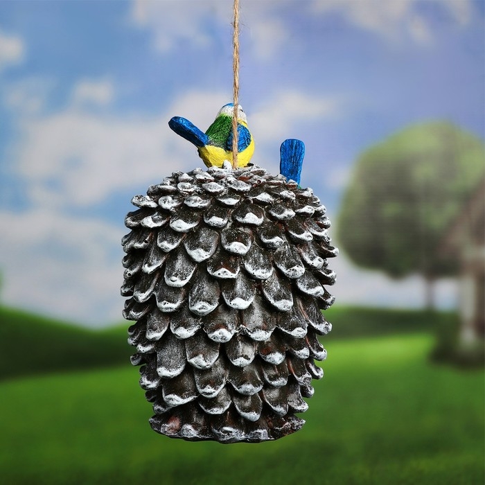 Подвесной декор "Кормушка шишка с птичками" 20х11х12см