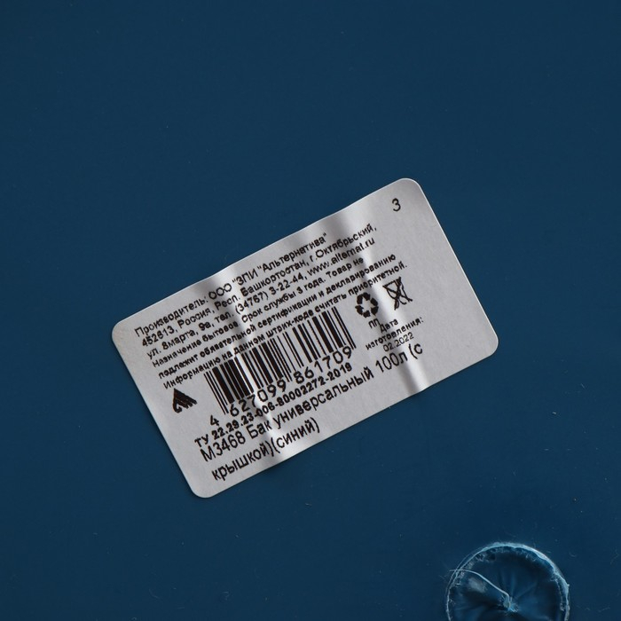 Бак хозяйственно-бытовой, 100 л, с крышкой, синий