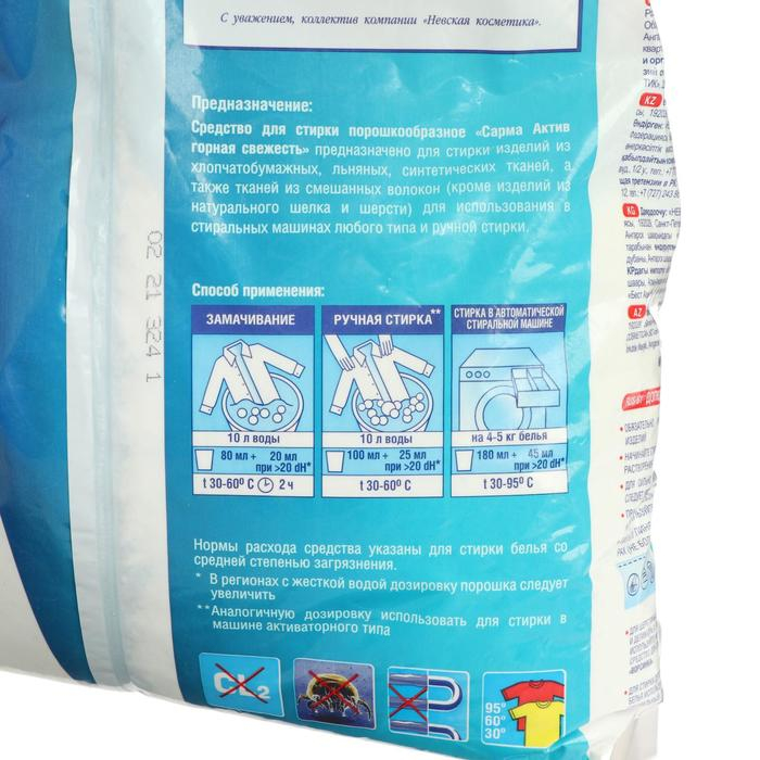 Стиральный порошок Sarma Актив «Горная свежесть», универсальный, 4,5 кг
