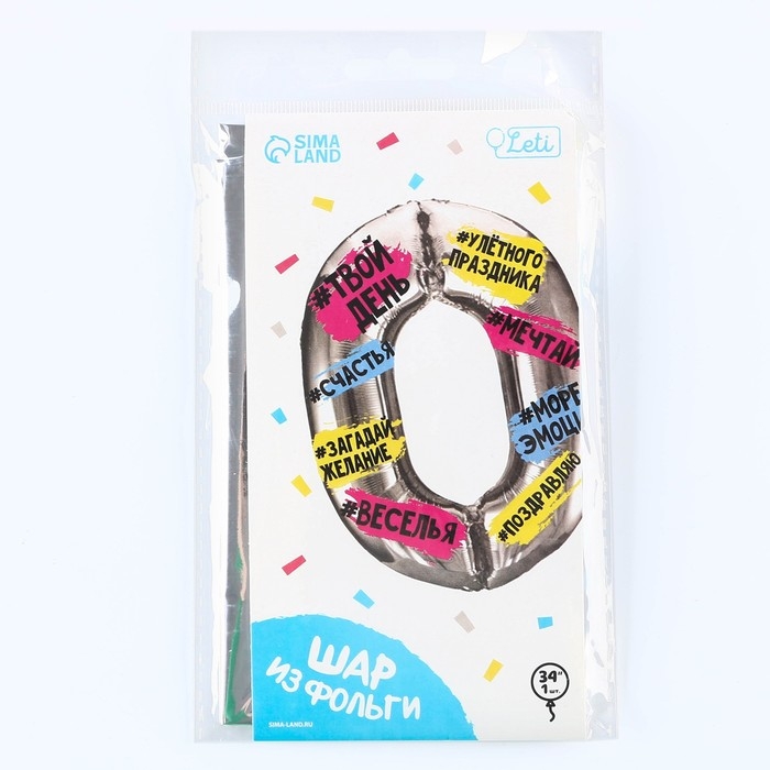 Воздушный шар фольгированный 34" Цифра 0, хештеги, с подложкой