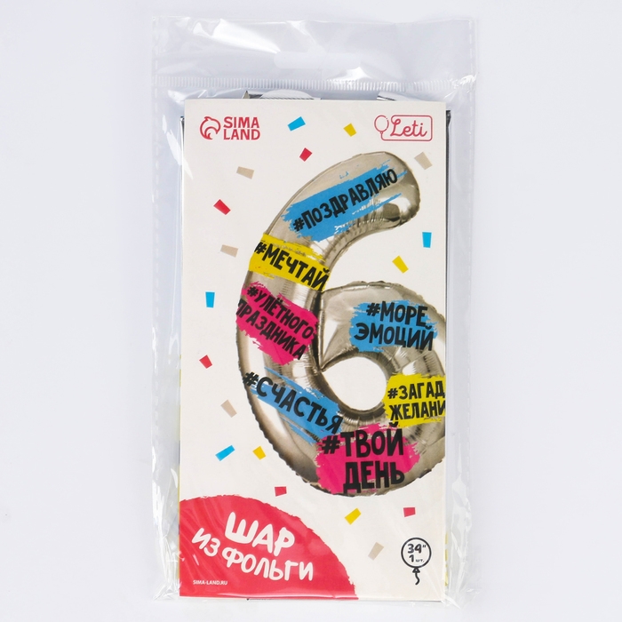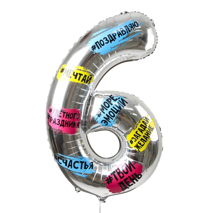 Воздушный шар фольгированный 34" Цифра 6, хештеги, с подложкой