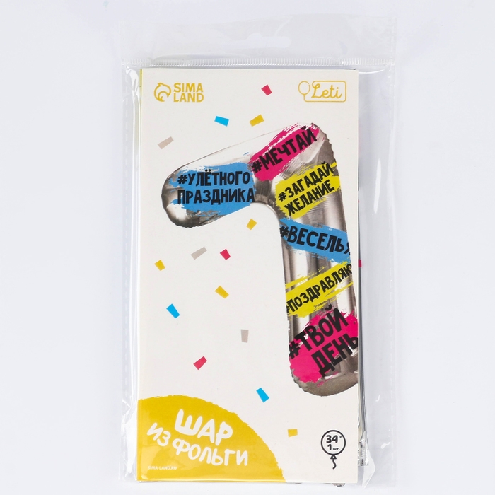 Воздушный шар фольгированный 34" Цифра 7, хештеги, с подложкой