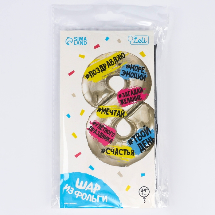 Воздушный шар фольгированный 34" Цифра 8, хештеги, с подложкой