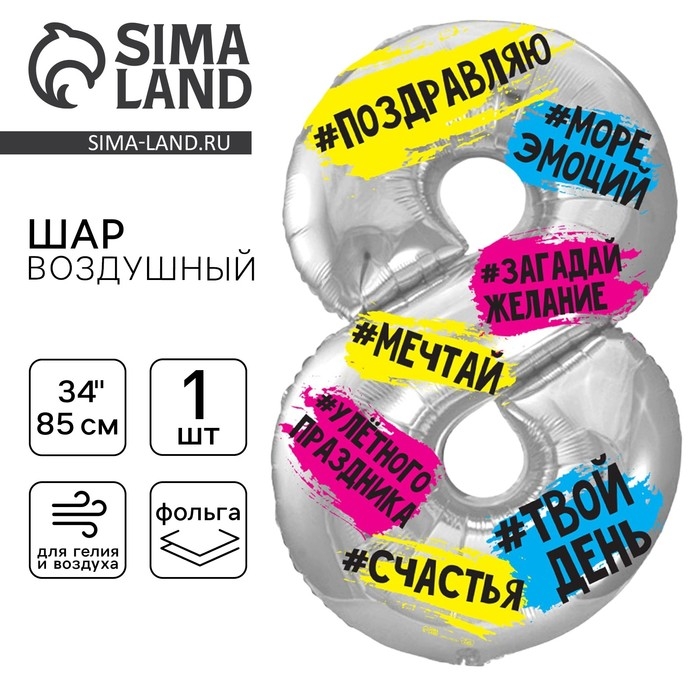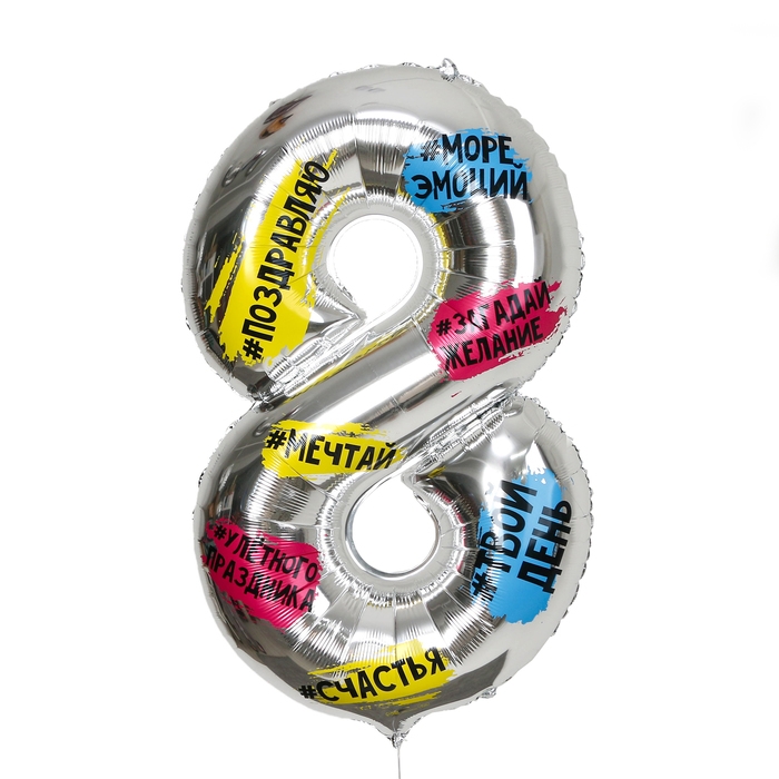 Фольгированный шар в виде цифры с хештегами — оригинальный способ поздравить с днём рождения. При необходимости, соберите число из двух шаров-цифр. Отлично подойдёт в качестве реквизита для фотосессии или оформления помещения.