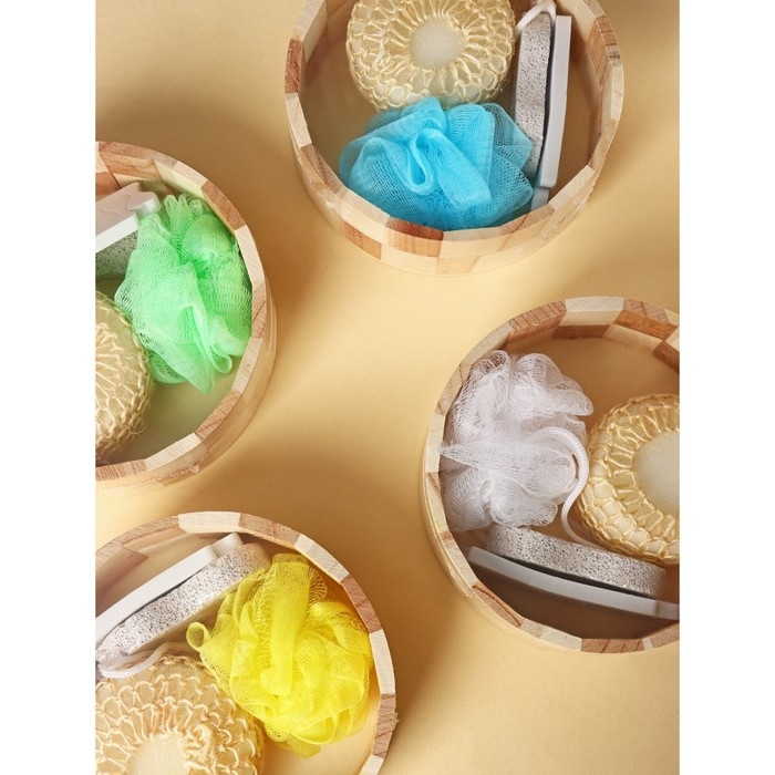 Набор банный Доляна, 4 предмета (мочалка, губка, разделитель для пальцев, пемза), цвет МИКС