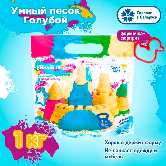 Умный песок приятен на ощупь, напоминает по консистенции морской песок. Он хорошо держит форму, не застывает на воздухе и не липнет. Поможет весело провести время детям разного возраста.