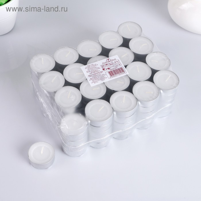 Набор чайных свечей, 3,8х1,6 см, 3,5 ч, 12 г, 100 штук, белый