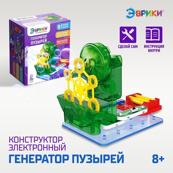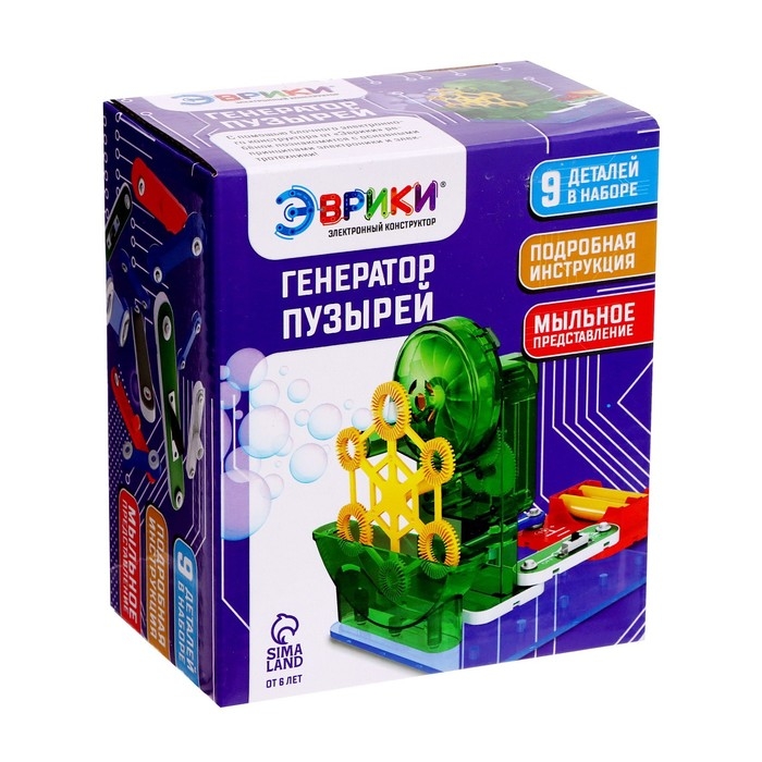 - Набор имеет красочную инструкцию: по ней ребёнок самостоятельно соберёт схему «Генератор пузырей» и испытает её!