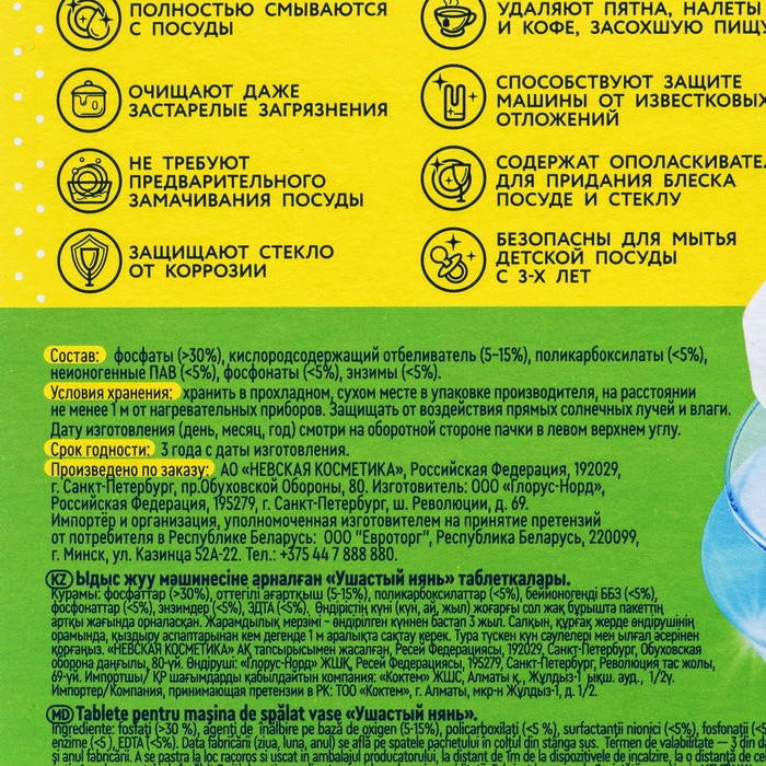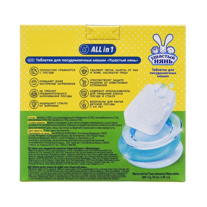 Таблетки для посудомоечных машин Ушастый нянь, 20 шт