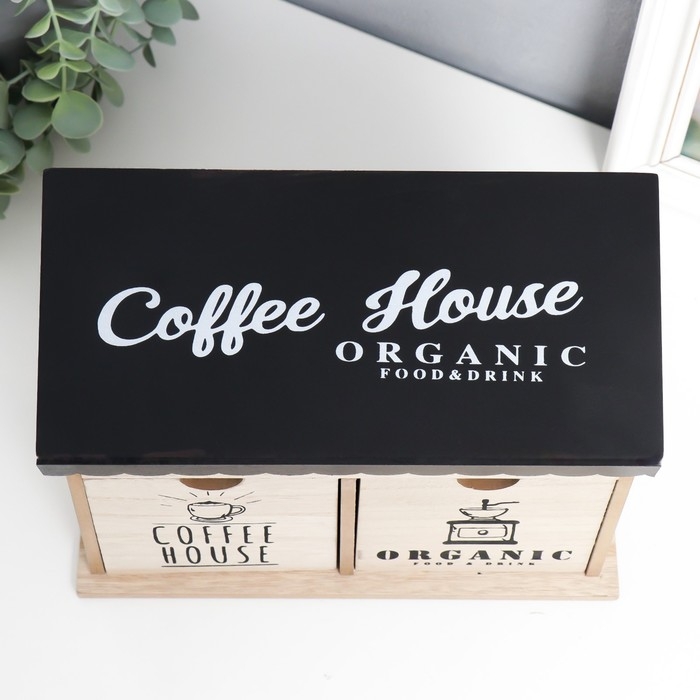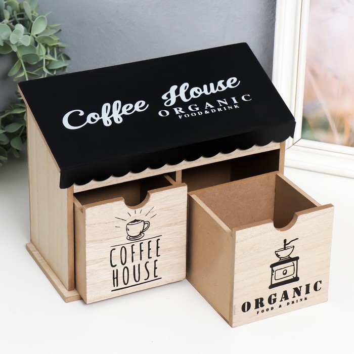 Шкатулка дерево с 2-мя ящиками "Кофейный домик" 10,5х23,5х18 см