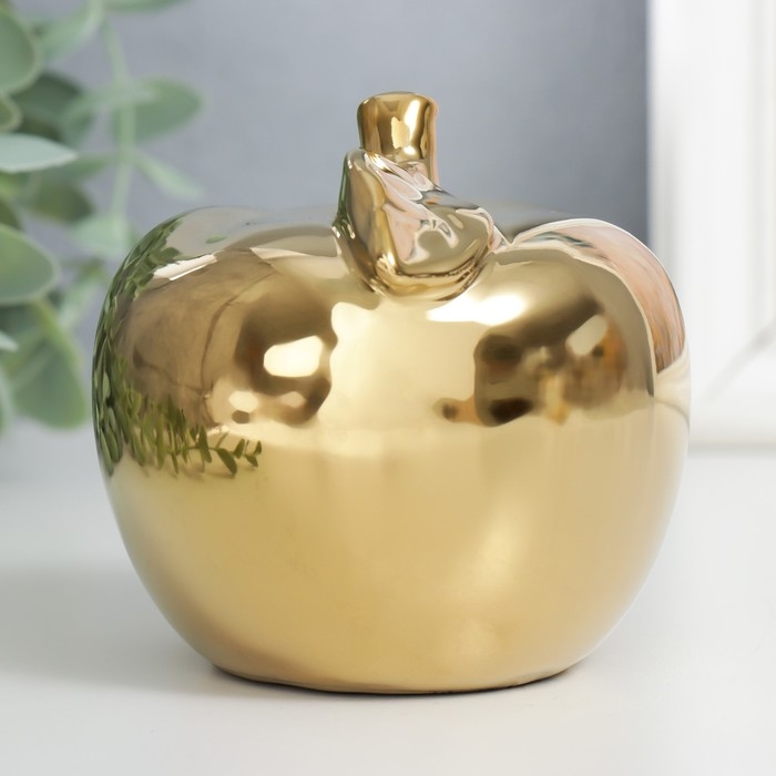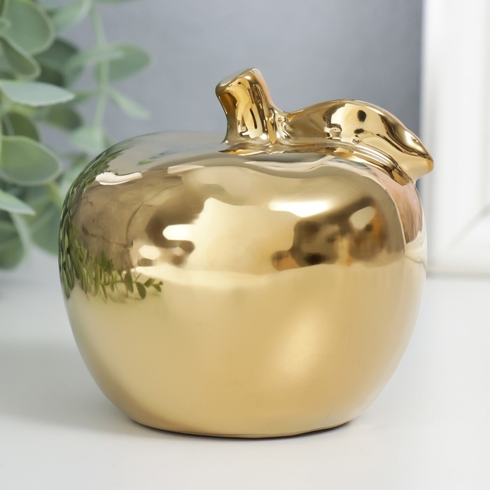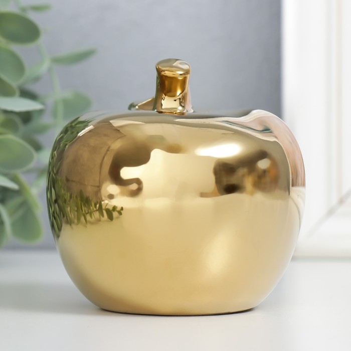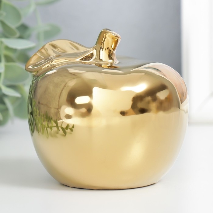 Сувенир керамика "Золотое яблоко с листочком" 9,5х10,5х9,5 см