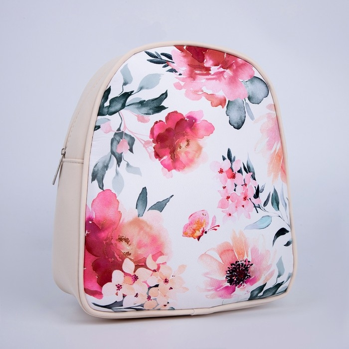 Рюкзак школьный текстильный «Цветы», 27х10х23 см, отдел на молнии, цвет розовый