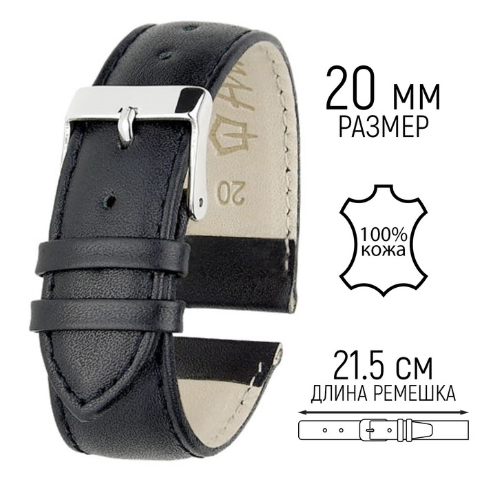 Ремешок для часов мужской, 20 мм, запряжник 75 мм, горт 115 мм, удлиненный, натуральная кожа