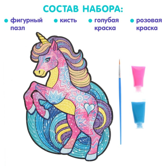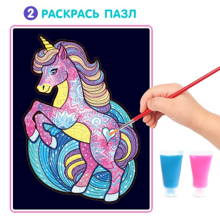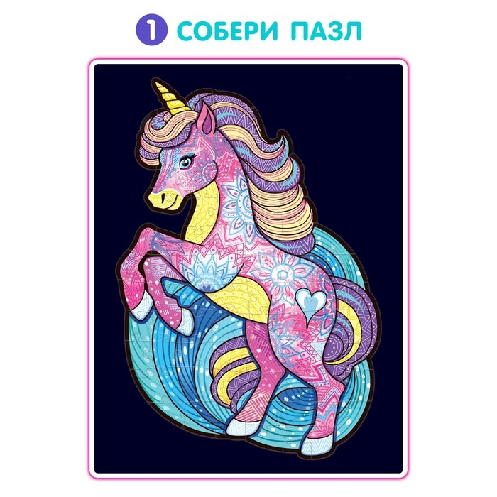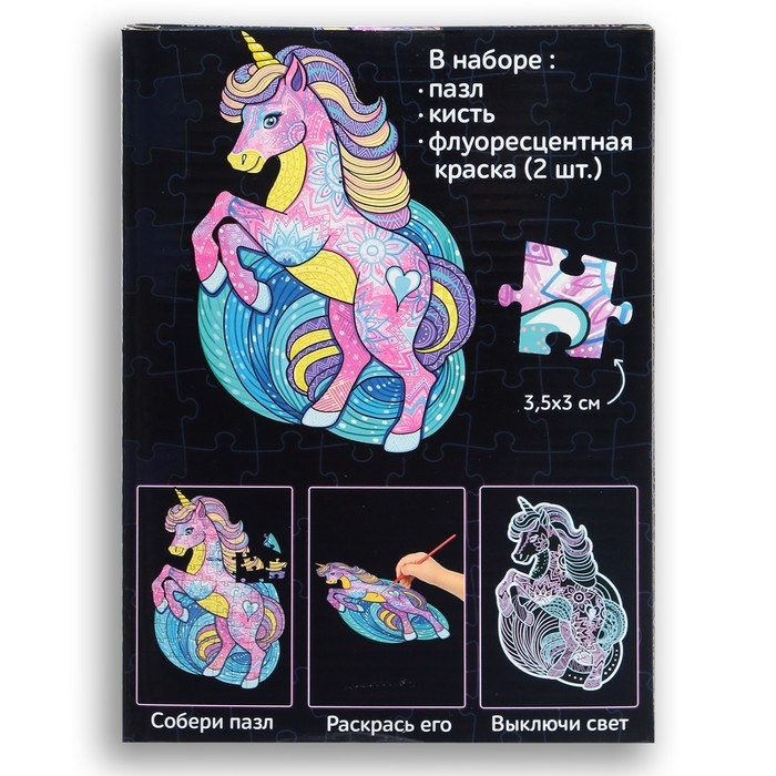 Светящийся пазл «Единорог», флуоресцентные краски, 76 деталей
