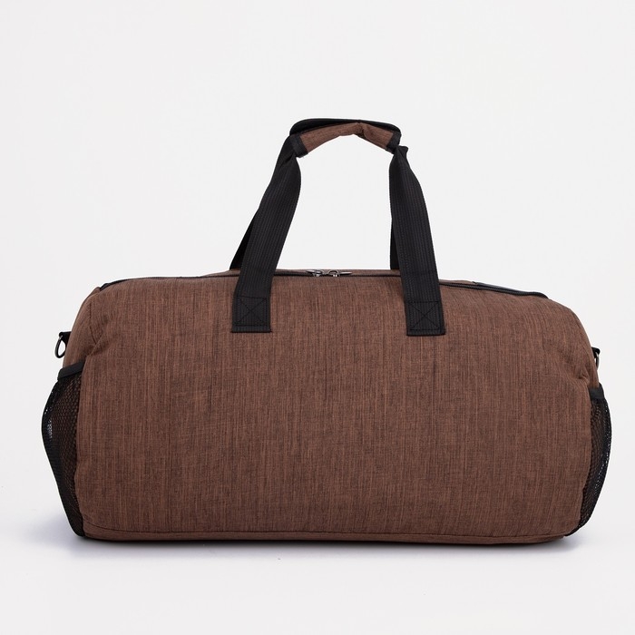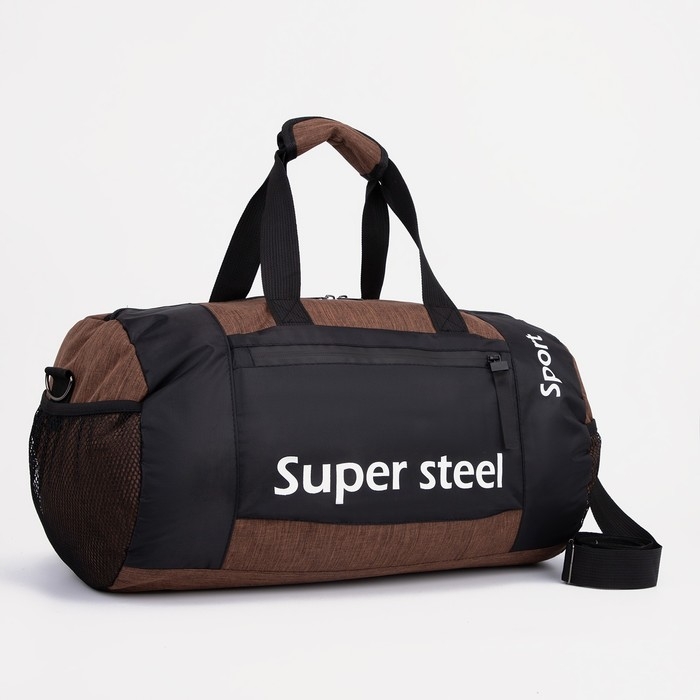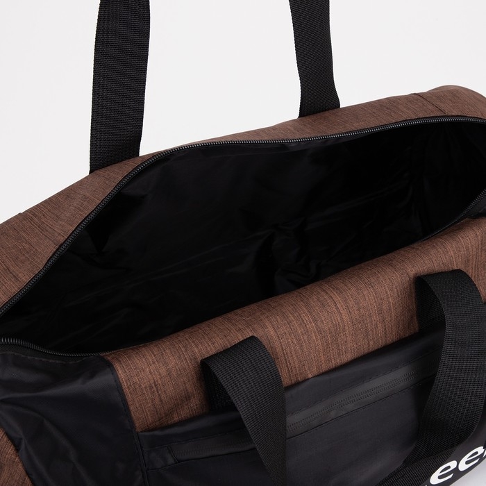 Сумка спортивная на молнии, 3 наружных кармана, длинный ремень, средний размер, цвет чёрный/коричневый
