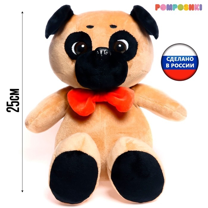 Мягкая игрушка «Собака Мопс», с красным бантиком-бабочка, 25 см