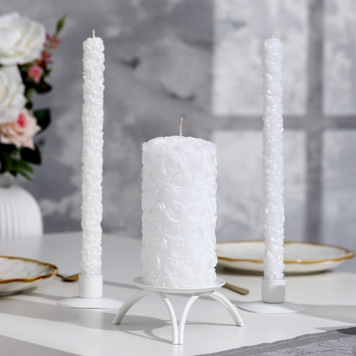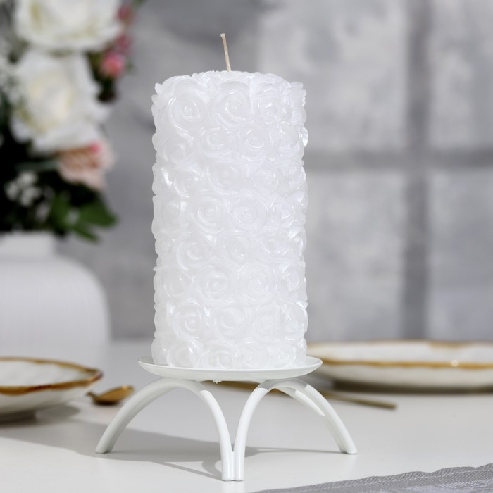 Свеча-цилиндр свадебная "Розы", 14х7,5 см, белая, домашний очаг