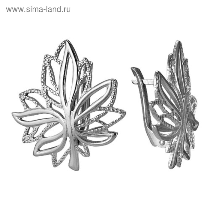 Серьги «Листочки» кленовые, посеребрение с оксидированием