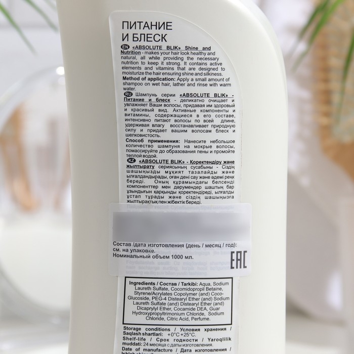 Шампунь для волос Absolute Blik питание и блеск, 1000 мл