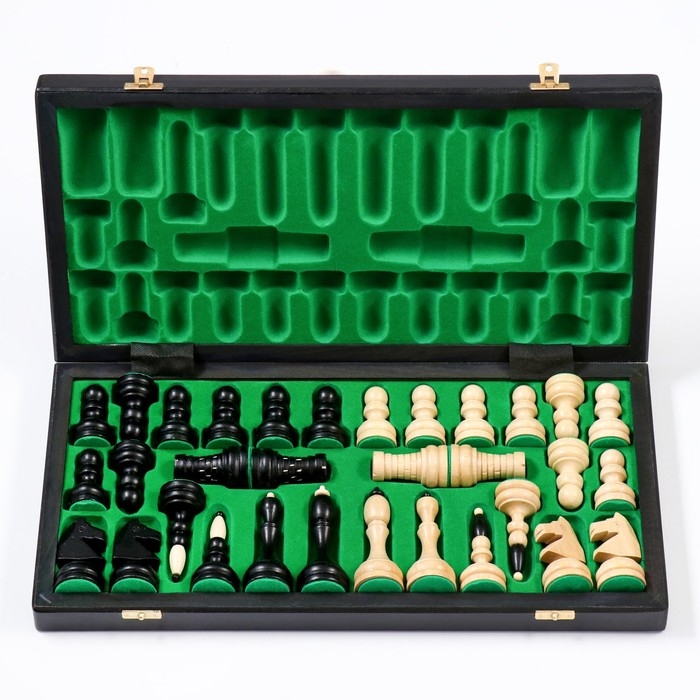 Наличие бархата зеленого цвета добавляет изыска изделию, а для удобного хранения шахматных фигур предусмотрены специальные отсеки, что обусловливает минимум передвижения при переноске.