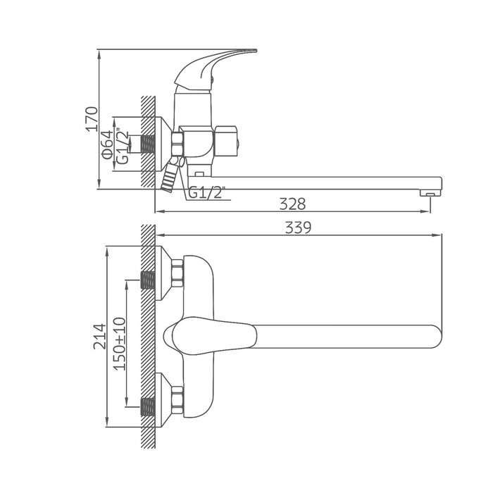 Смеситель для ванны Accoona A7124, однорычажный, излив 300 мм, душевой набор, хром