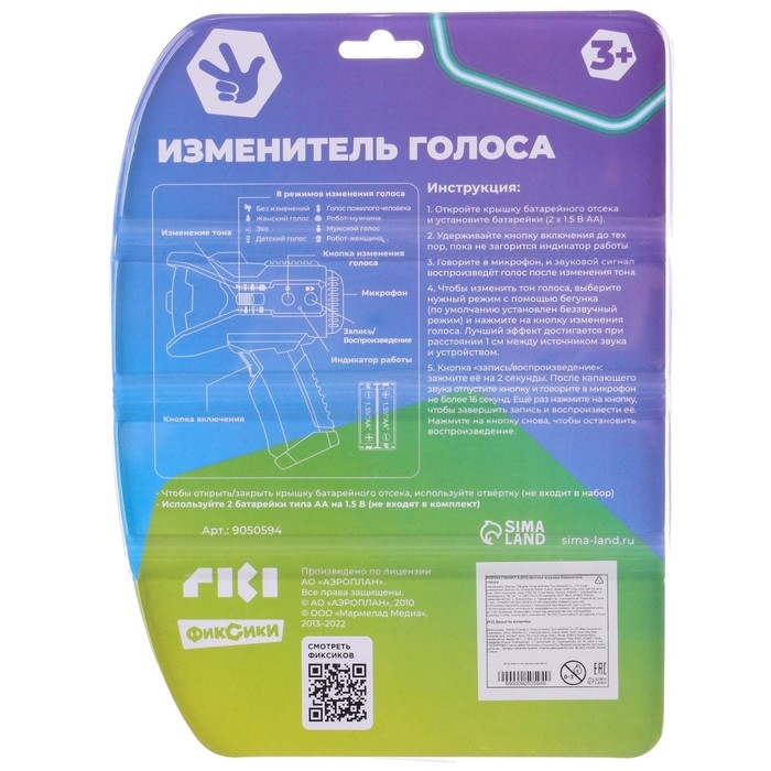 Громкоговоритель «Изменитель голоса», Фиксики, мегафон, 8 режимов, от батареек