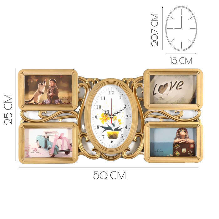 Часы настенные интерьерные, фоторамка - коллаж "Любовь", 50 х 25 см, циферблат 20.7 х 15 см