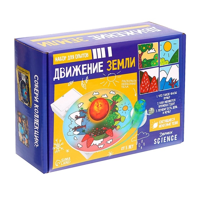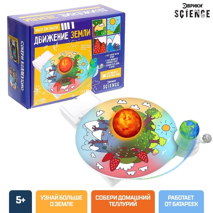 С набором для опытов «Движение Земли» ребёнок соберёт теллурий — прибор для демонстрации годового движения нашей планеты вокруг Солнца. Такой тип модели отображает, как проходит год на Земле, как меняются сезоны и как происходит смена дня и ночи.